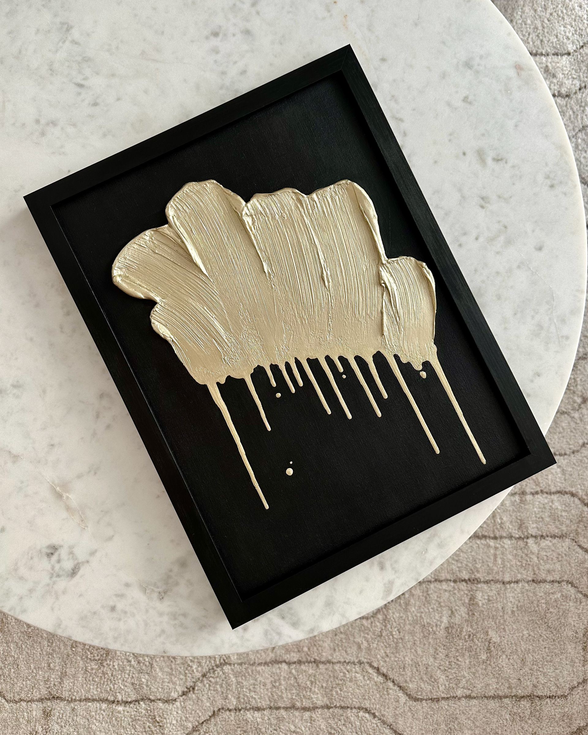Medium: Texture paste, acrylic paint, varnish on canvas